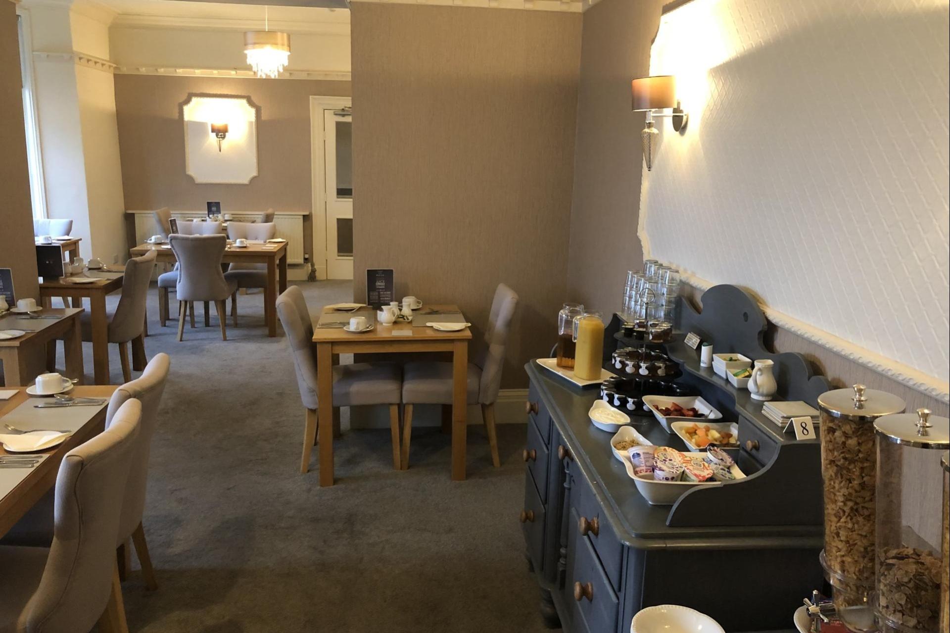 You can enjoy our extensive breakfast menu in our beautifully decorated, light and airy dining room from 08.30 am till 10.00 am (just so that you can have a lie in - you're on holiday after all). Sample Breakfast Menu Orange and Apple Juice, Extensive choice of cereals, Fresh Fruit , Yoghurts, Lynton House Full Breakfast , Smoked Salmon and Scrambled Eggs, Beans on Toast, Scrambled Eggs, Boiled Eggs, Poached Eggs, Croissants, a Pot of Tea or a Cafetiere of Freshly Brewed Coffee, Toast and Preserves, Vegetarian / Special diets catered for - please advise in advance. Breakfast is served 8.30 am to 10.00 (continental supplied if earlier breakfast is needed)